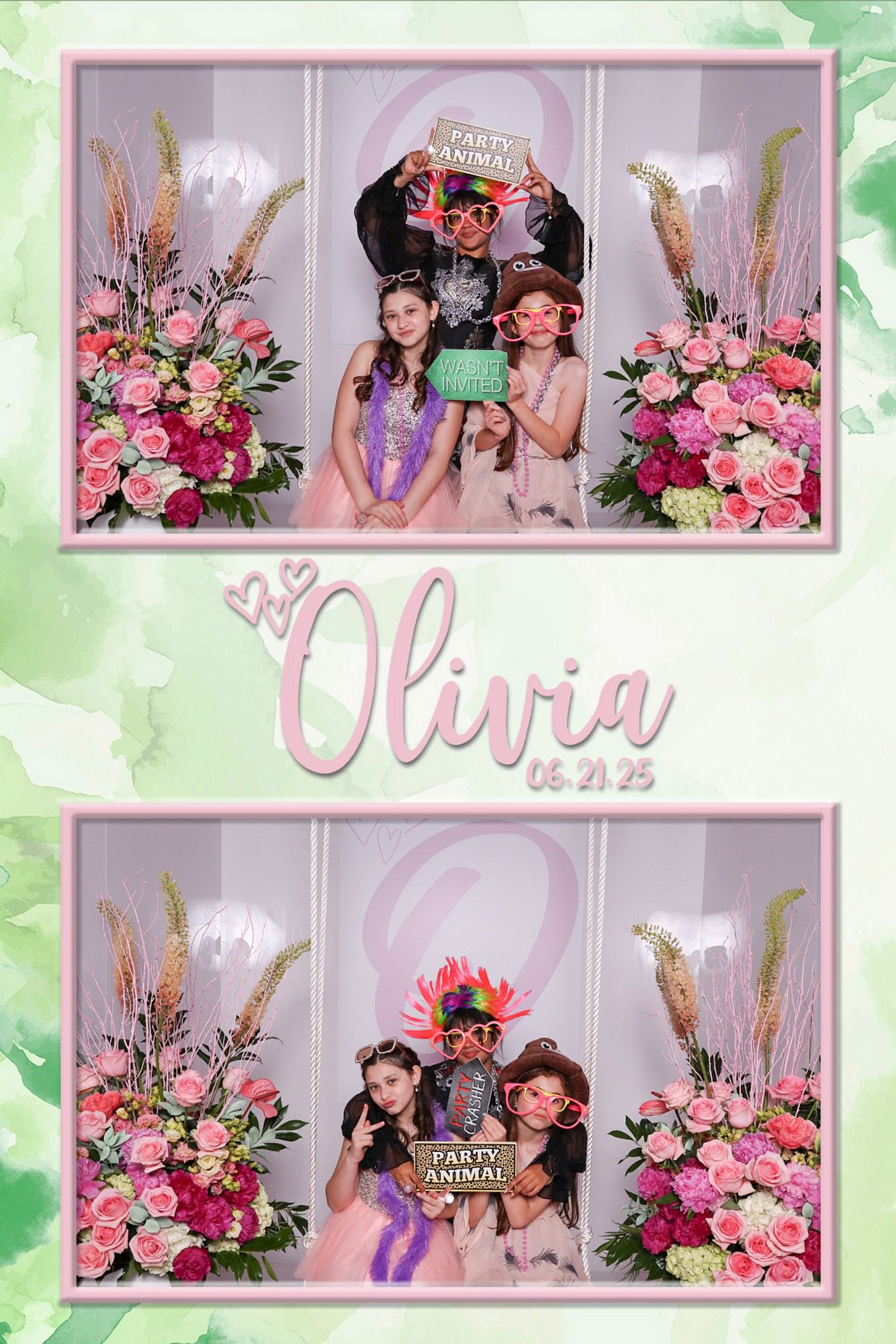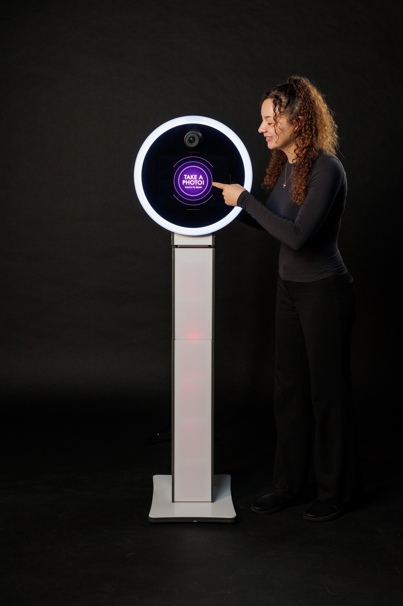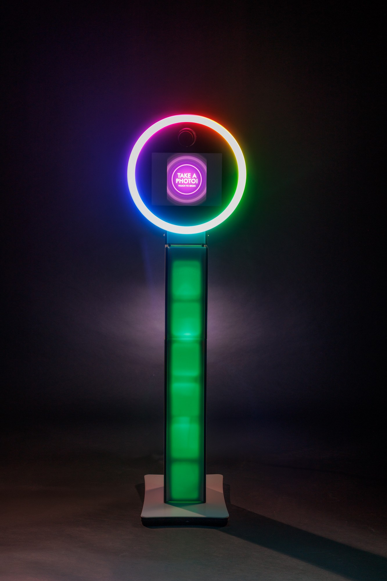 Super cool LED lights can be static or move continuously. In addition, 4×6 prints are sent wirelessly to our high speed printer. Photos can also be sent via text and email.