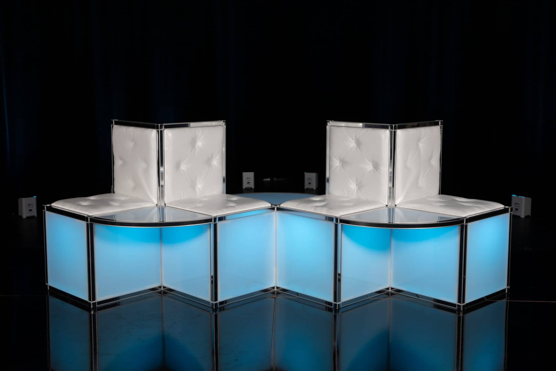A great add to any event, and compliment to lighting and decor. The DJ front board also has digital vertical panels that can project independantly or seemlessly synced with our 4K video wall.
