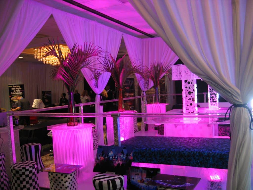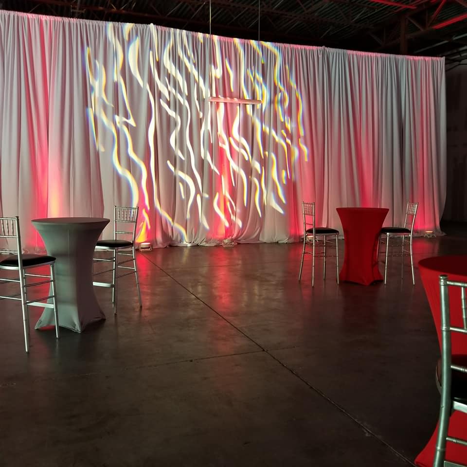 Adding event lighting can dramatically enhance the ambiance of any event. When set properly, lighting can emphasize and direct attention to specific areas of interest as well as set the mood for your event. We compact wireless/wired LED lights, which provide bright, brilliant colors while using very little energy. We offer a variety of lighting options to fit your event needs. Complete the contact form to receive our latest packet with additional detail