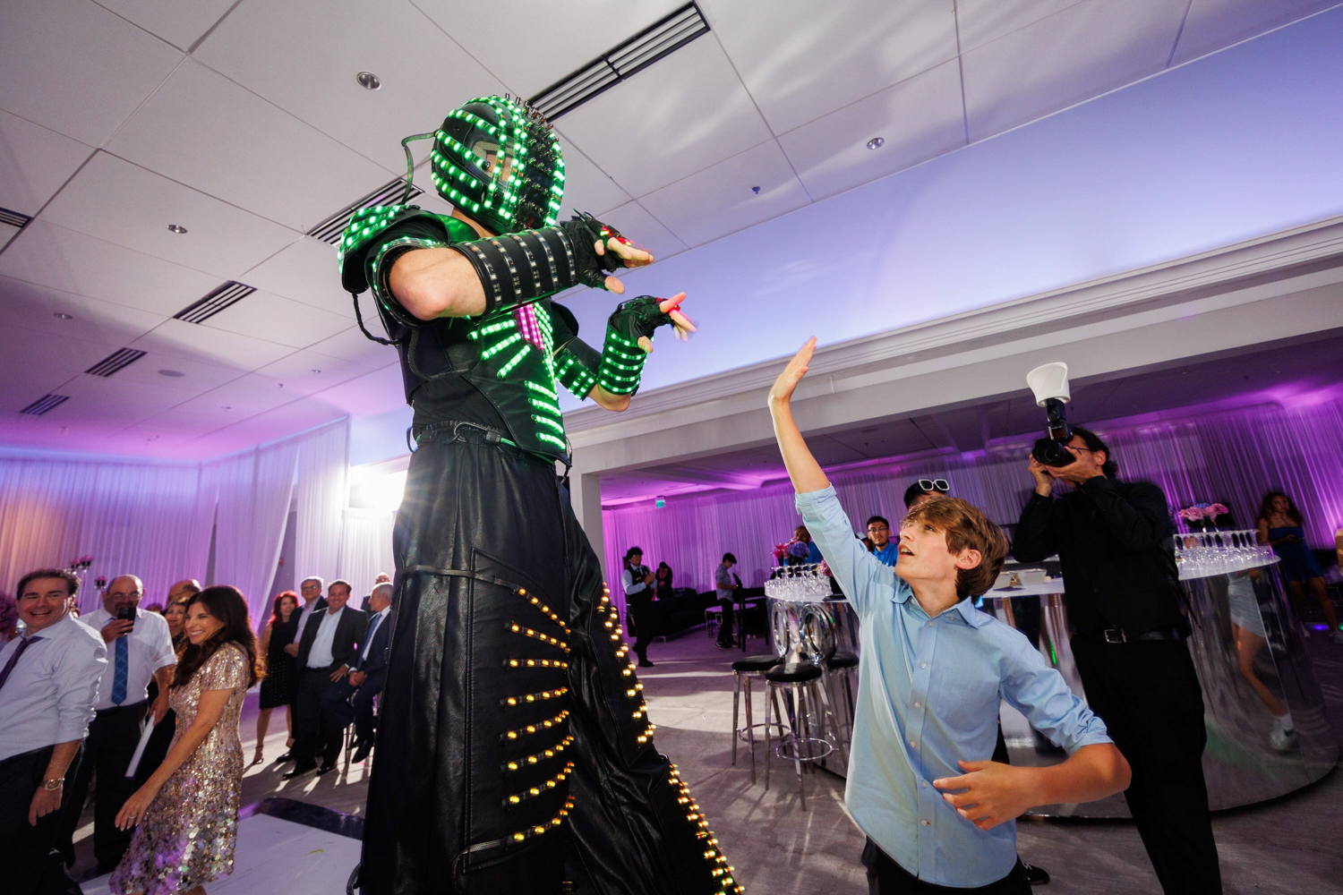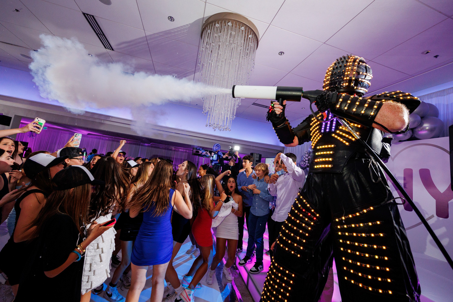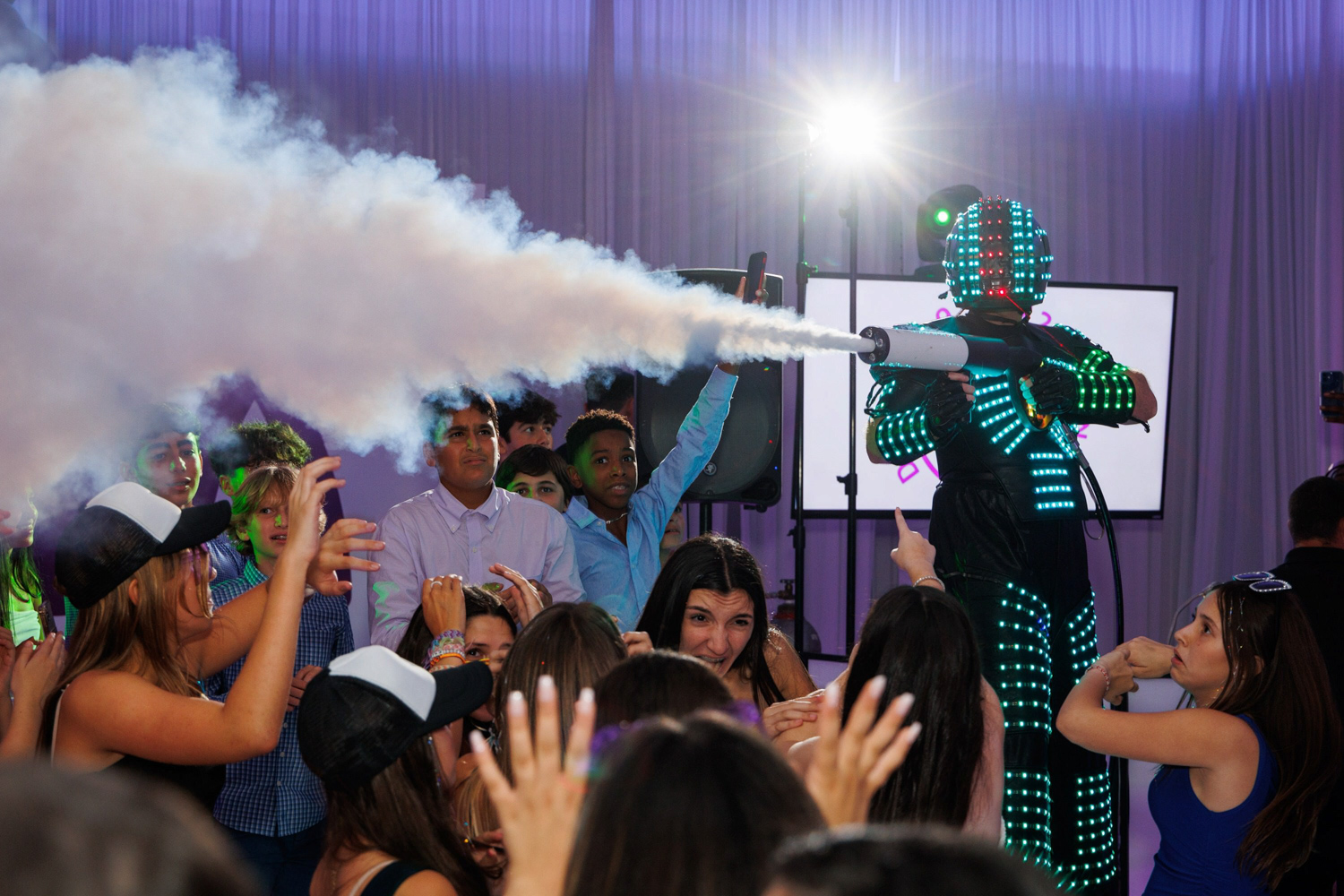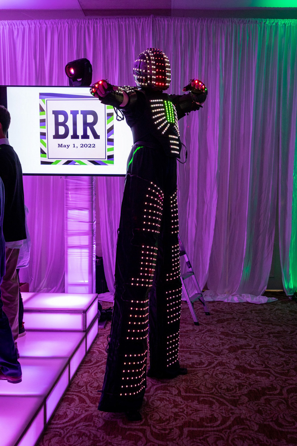 Our MegaBots stand 9 feet tall, and are full of digital and extremely bright LED Lights from top to bottom! MegaBots are perfect for introductions, a mid party pick up, or a way to end your night with a bang! MegaBots come with LED CO2 Cryo Guns, and our indoor cold sparkulars to add to your perfect event! For more information about the MegaBots, feel free to call us today!