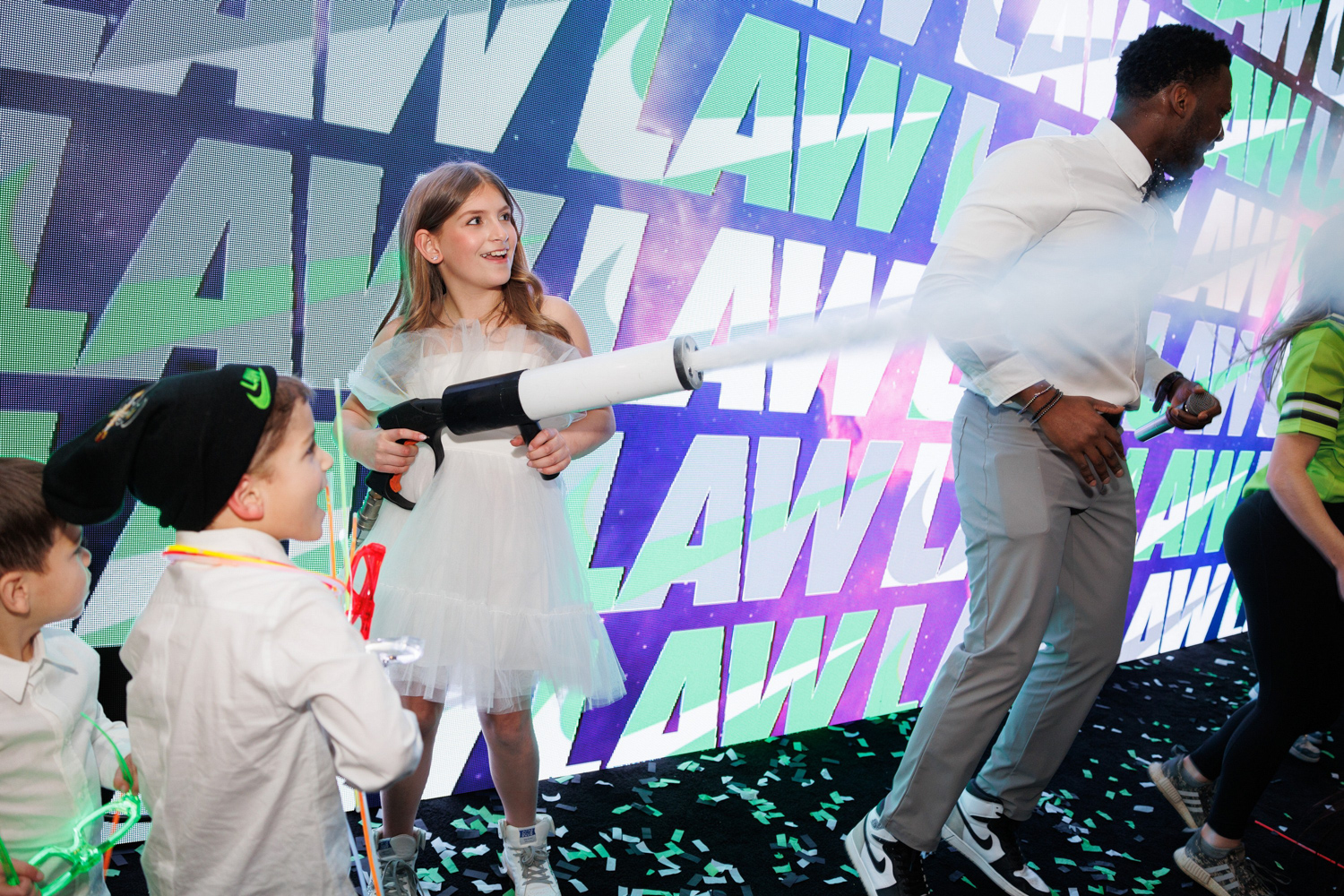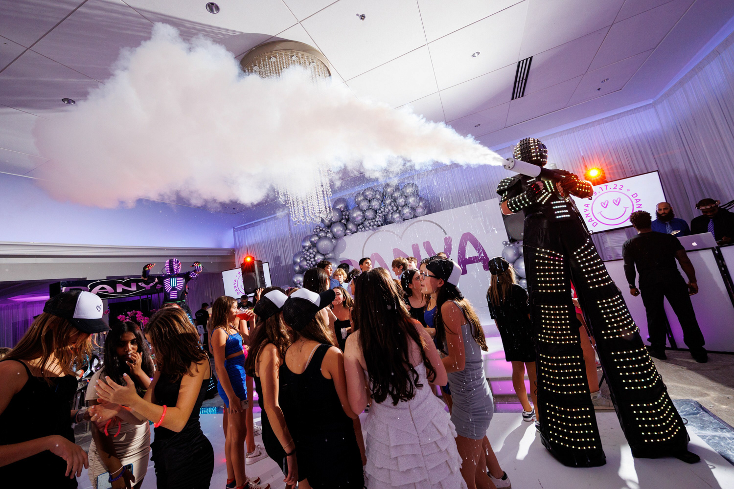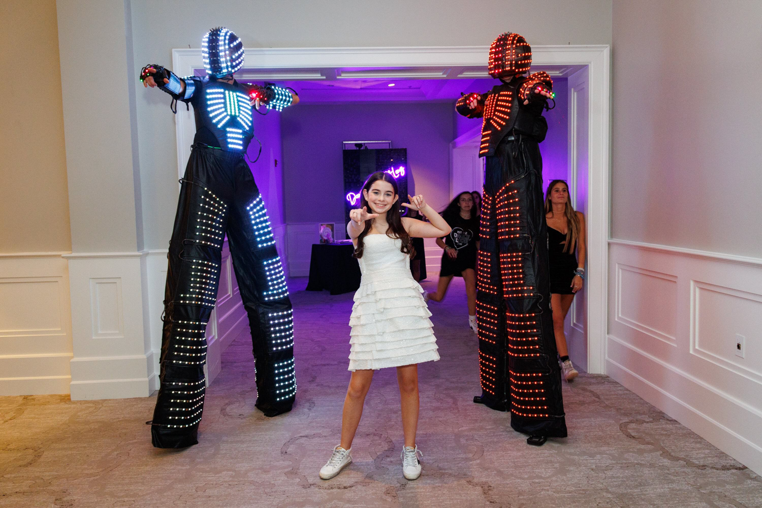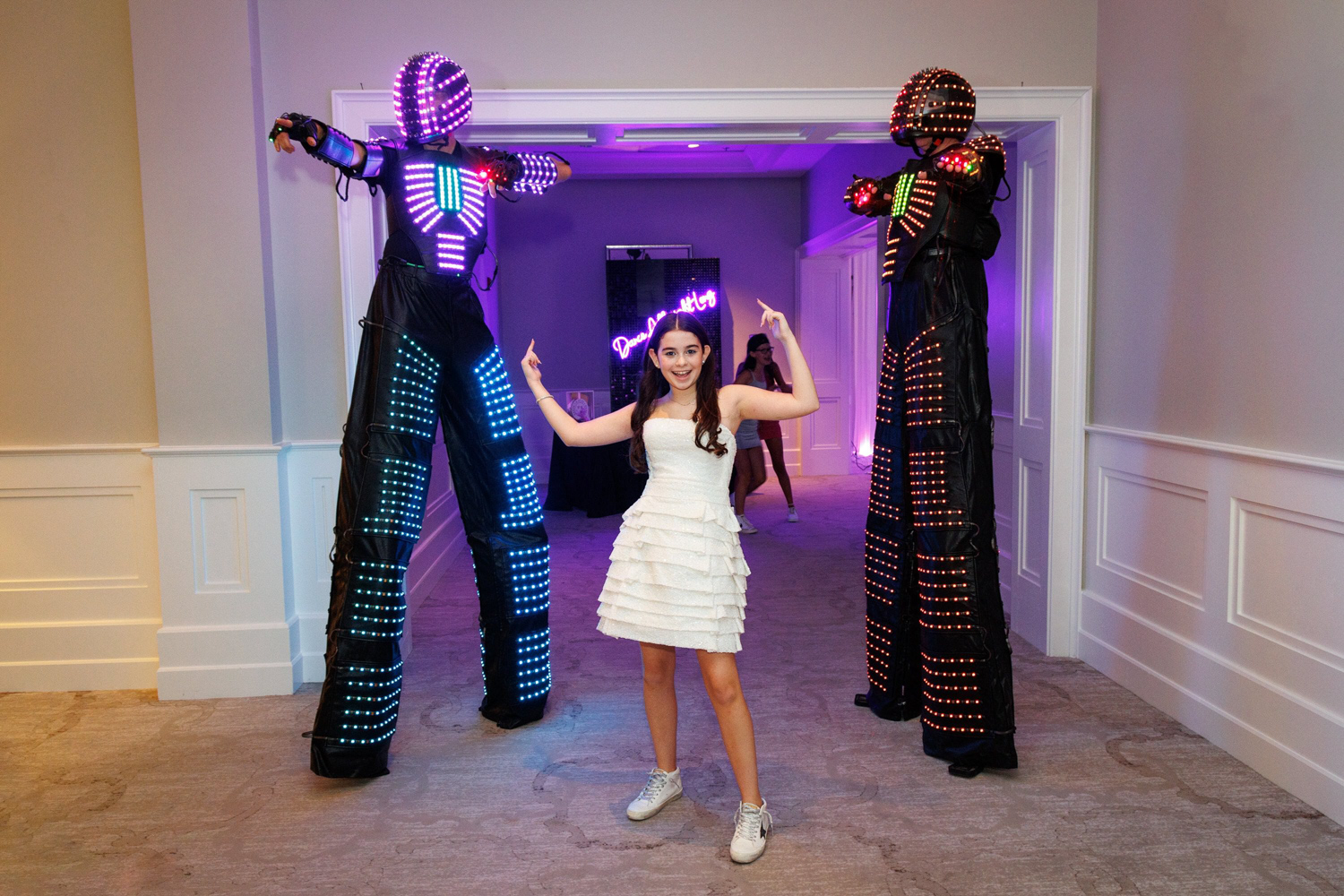 Our MegaBots stand 9 feet tall, and are full of digital and extremely bright LED Lights from top to bottom! MegaBots are perfect for introductions, a mid party pick up, or a way to end your night with a bang! MegaBots come with LED CO2 Cryo Guns, and our indoor cold sparkulars to add to your perfect event! For more information about the MegaBots, feel free to call us today!