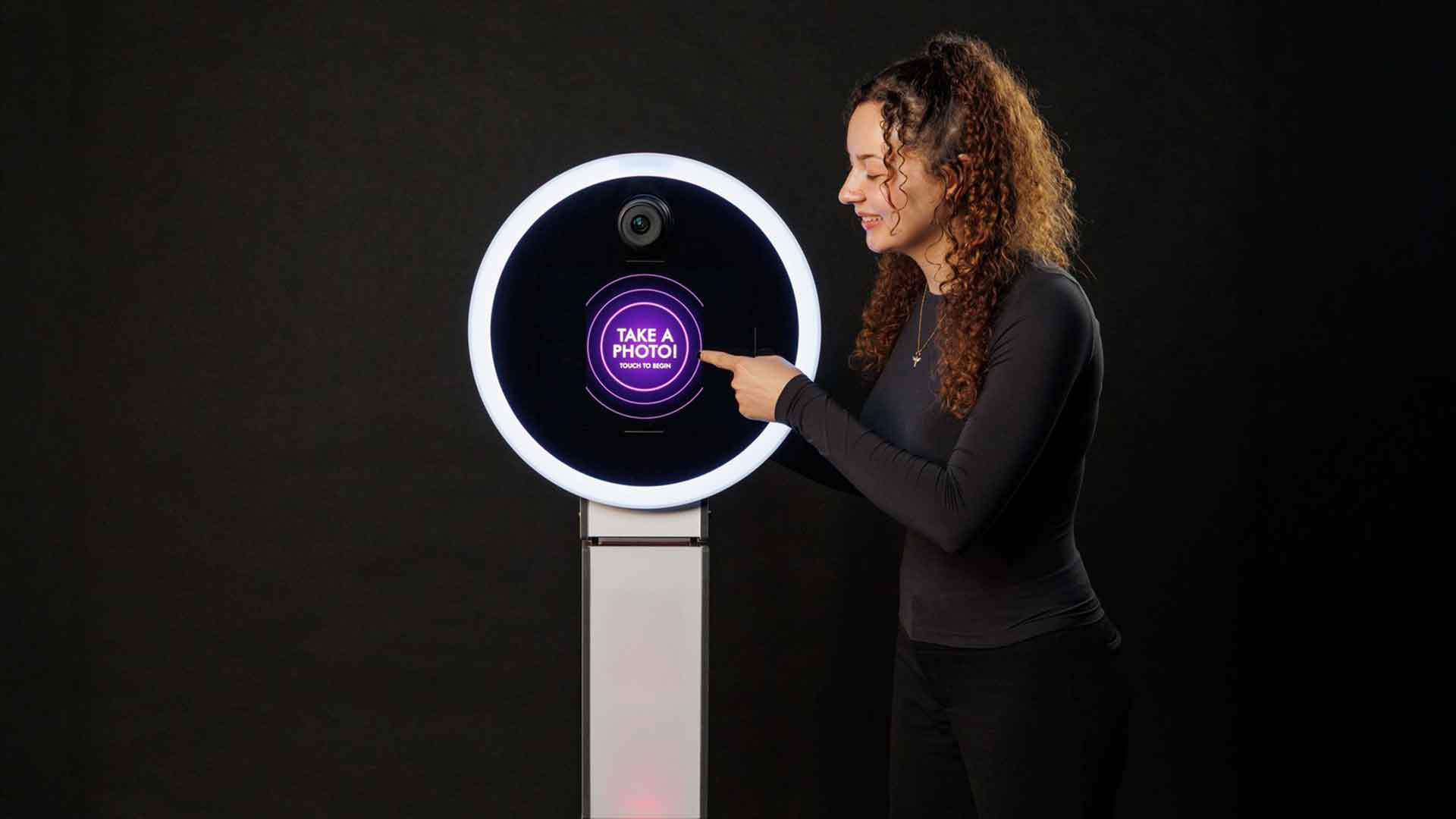 Our most booked Photo Booth, PhotoBOT has a clean, sleek contemporary look, can be used with a provided